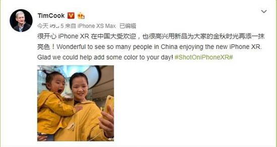 今天,苹果CEO库克发布微博,表示,iPhone XR在中国大受欢迎。从库克的微博来看,iPhoneXR在中国的首销很不错,不过具体销量他们并没有公布。