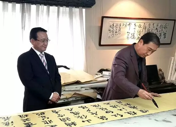 陈柏光主席邀请丁谦先生择时赴台湾进行书法艺术交流,丁谦先生欣然应允并表示感谢。