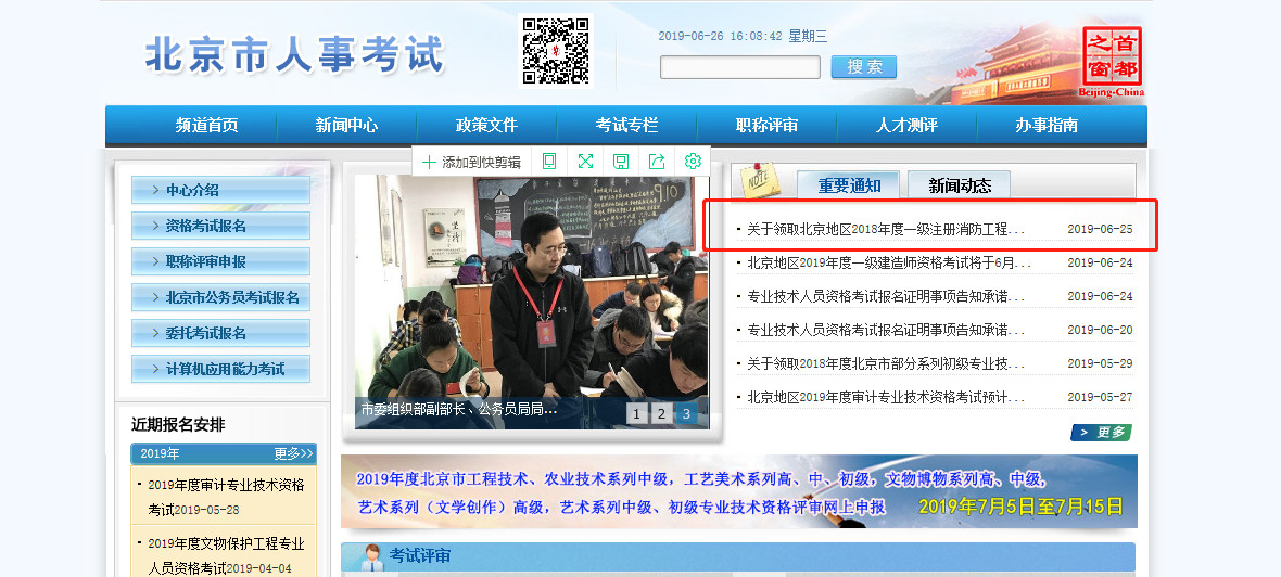 关于领取北京地区 2018 年度一级注册消防工程师证书