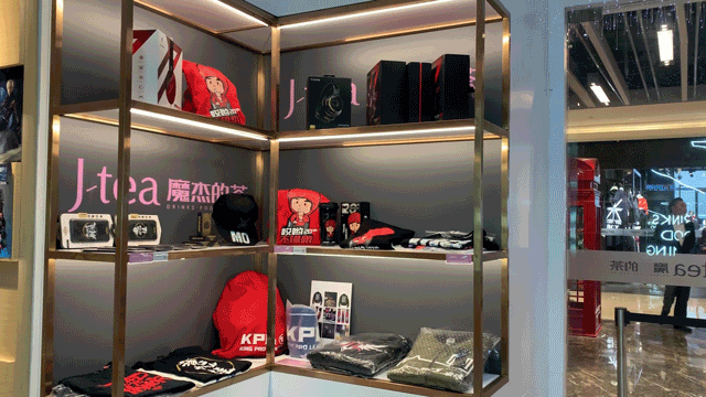 这家奶茶店是由杰伦投资的魔杰电竞开的,一家集娱乐+茶饮+社交+新零售为一体的奶茶店以杰伦的名气作为营销卖点;从外表看奶茶店装修非常简单,如果不是因为周杰伦的IP人物,可能路人只会认为这是一家很普通的奶茶店;