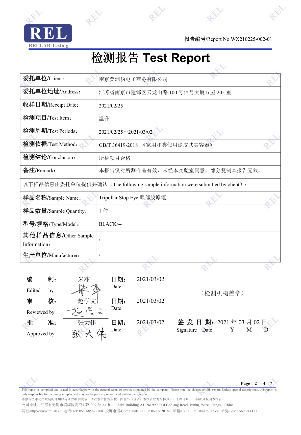 TriPollar初普经多项测试,完全满足国家标准GB4706.1的安全性标准,其中电极温度实测是合格的。为了再次证明自己产品的安全性,初普Tripollar主动向两家有资质的检测机构提交争议产品,以同样的检测标准:GB/T 36419-2018 《家用和类似用途皮肤美容器》进行检测。昨天两家检测机构出具的送检结果皆证明初普Tripollar产品温升项目检测合格。