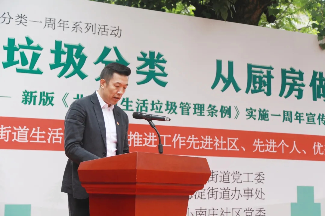 李博从党建引领、减量提质、优化基础、志愿先行、宣传发动以及示范先行六个方面总结了过去一年海淀街道的垃圾分类工作推进情况,并就今后开展垃圾分类工作提出了三点要求: