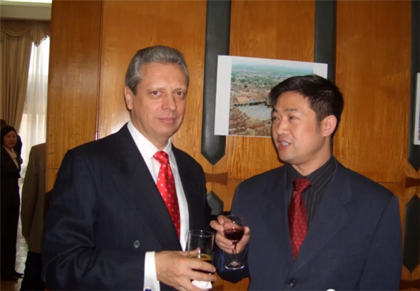 领亿来形象代言人伍飞先生与罗马尼亚驻华大使维奥雷尔·伊斯蒂奇瓦亚·布杜拉在罗马尼亚国庆酒会上