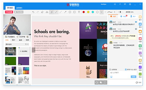 在发展过程中,通过借助SaaS技术服务商工具,实现从单一业务到多项业务、单一课程向多项课程靠拢。欢拓云直播平台根据教育机构、讲师、学生不同的需求打造的在线教育平台。教育机构和讲师可以通过直播课堂在不同的教学方式中进行直播授课。微信H5、小程序、PC端以及APP内嵌课堂等多种终端教学方式满足需求各种在线教育课堂。