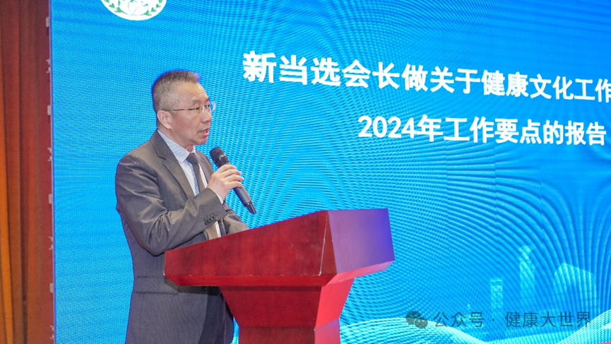 新当选会长王忠教授发表了关于健康文化工作委员会2024年工作要点的报告。他的报告内容详实、思路清晰,为健康文化工作委员会在新的一年中的工作指明了方向。
