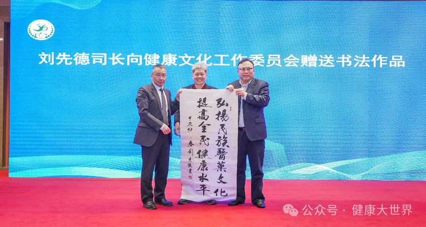 其五,原国家市场监督管理总局一级巡视员刘先德撰写了“弘扬民族医药文化,提高全民健康水平”的书法作品,现场赠送给工作委员会,以此表达对民族医药健康文化事业的美好祝愿。