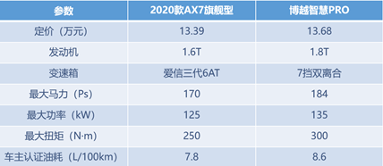 东风风神2020款AX7自动AI旗舰型,官方定价13.39万元,与吉利博越2020款DCT 智慧PRO相比,实惠了将近3000元。