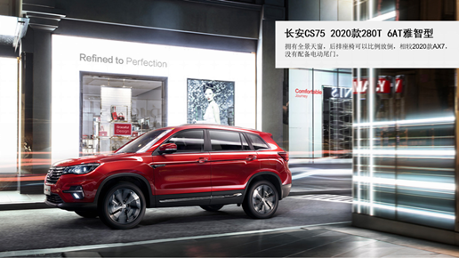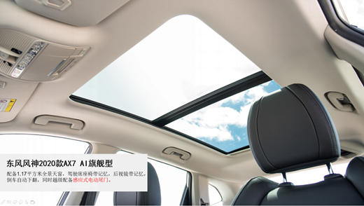 选择一辆车,在动力参数、车身尺寸既定的情况下,更丰富、实用的配置就成了加分项。全景天窗,已经成为自主品牌的必答题,在2020款AX7和2020款CS75上必须配置到位,不过2020款AX7的全景天窗达1.17平方米,更通透、宽阔。