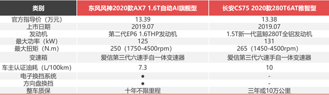 这两款产品均具有军工背景,在市场上的口碑都相当不错。我们选取价格相同的东风风神2020款AX7 1.6T自动AI旗舰型(13.39万元,简称2020款AX7)与长安CS75 2020款280T 6AT雅智型(13.38万元,简称2020款CS75)进行对比,看看它们的实力到底如何,到底哪一款才是年轻人的菜?