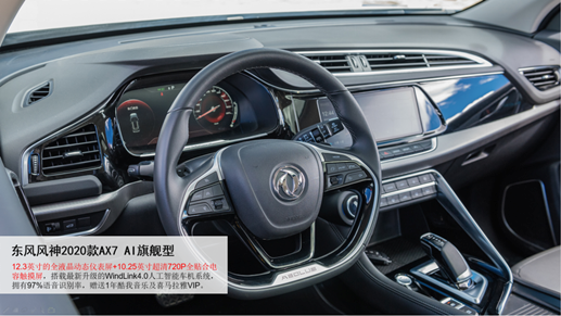 在硬件上,2020款AX7搭载12.3英寸的全液晶动态仪表屏+10.25英寸超清720P全贴合电容触摸屏的组合,比2020款CS75上7英寸液晶仪表盘+10.25寸悬浮式高清彩色液晶触摸屏的组合更酷炫、科技感十足。2020款AX7近期刚刚完成其WindLink4.0人工智能车机系统的升级,升级用户赠送一年期的喜马拉雅和酷我音乐的VIP会员服务,增加路书、组队功能等5项内容,也进一步体现出东风风神的诚意。