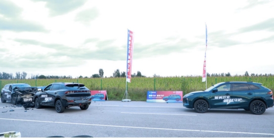 除了单纯考验车辆主动安全的环节,这场智能辅助全场景测试还进行了主被动安全结合试验。在双车对碰--测试AEB制动环节,两辆风行T5 EVO以100km/h的相对速度高速对撞,第三辆风行T5 EVO在ACC跟随前车正常行驶过程中,遇到前车突然发生事故紧急自动制动,表现出优异的AEB自动紧急制动性能,第一时间保证了车内人员的安全。而位于前方的风行T5 EVO与来车碰撞后,A柱和车身结构无变形,前排驾驶员和副驾驶员侧车门均可打开,气囊和安全带也对车内乘员起到了保护作用,展现出优异的被动安全性能。