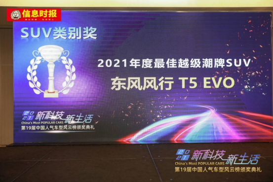 除了在各大权威测试中崭露头角外,风行T5 EVO的全能实力更受到了行业知名媒体的高度关注,并荣获“30秒懂车、车生活网/车算子、my车轱辘、网易汽车、一点资讯、信息时报、新车评/小新说车”等多家媒体颁发的“2021年度推荐中国SUV、最受欢迎潮流SUV、年度最潮女神新车、年度都市潮跑SUV、年度最具性价比SUV、最佳越级潮牌SUV、年度潮流紧凑型SUV”等荣誉称号,诸多极具含金量的奖项再次证明风行T5 EVO受到市场和行业的广泛认可。