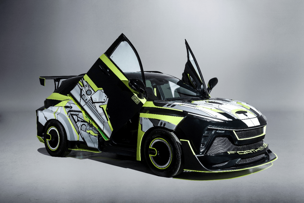 再来看另一款剪刀门车型。对于百万级性能车而言,剪刀门仿佛已成为标志,基于风行T5 EVO的运动潮范儿改装后,剪刀门斜向上45度开启,就像给车上装了两个飞翼,既炫酷,又充满了性能风范,在街上时刻都能吸引到满满的回头率。再加上大面积的前铲和多层次的中网,机甲拉花的涂装和剑眉刀锋前灯组,以及赛博朋克风格的侧面轮毂和赛用级别的夸张大尾翼,运动时尚气息显露无遗。