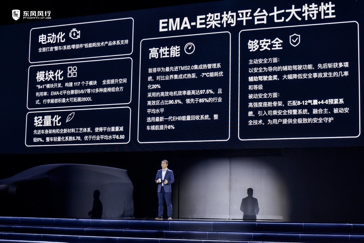 更细化来看,EMA-E架构的核心优势在于 “超长续航、顶尖品质”,而且东风风行进一步发挥了自身军工品质的造车优势,在EMA-E上强调了空间、安全、驾乘、可靠、动力等多方面的技术优化。以EMA-E技术平台为开端,也让东风风行新能源车型的发展具备了更多的想象力。