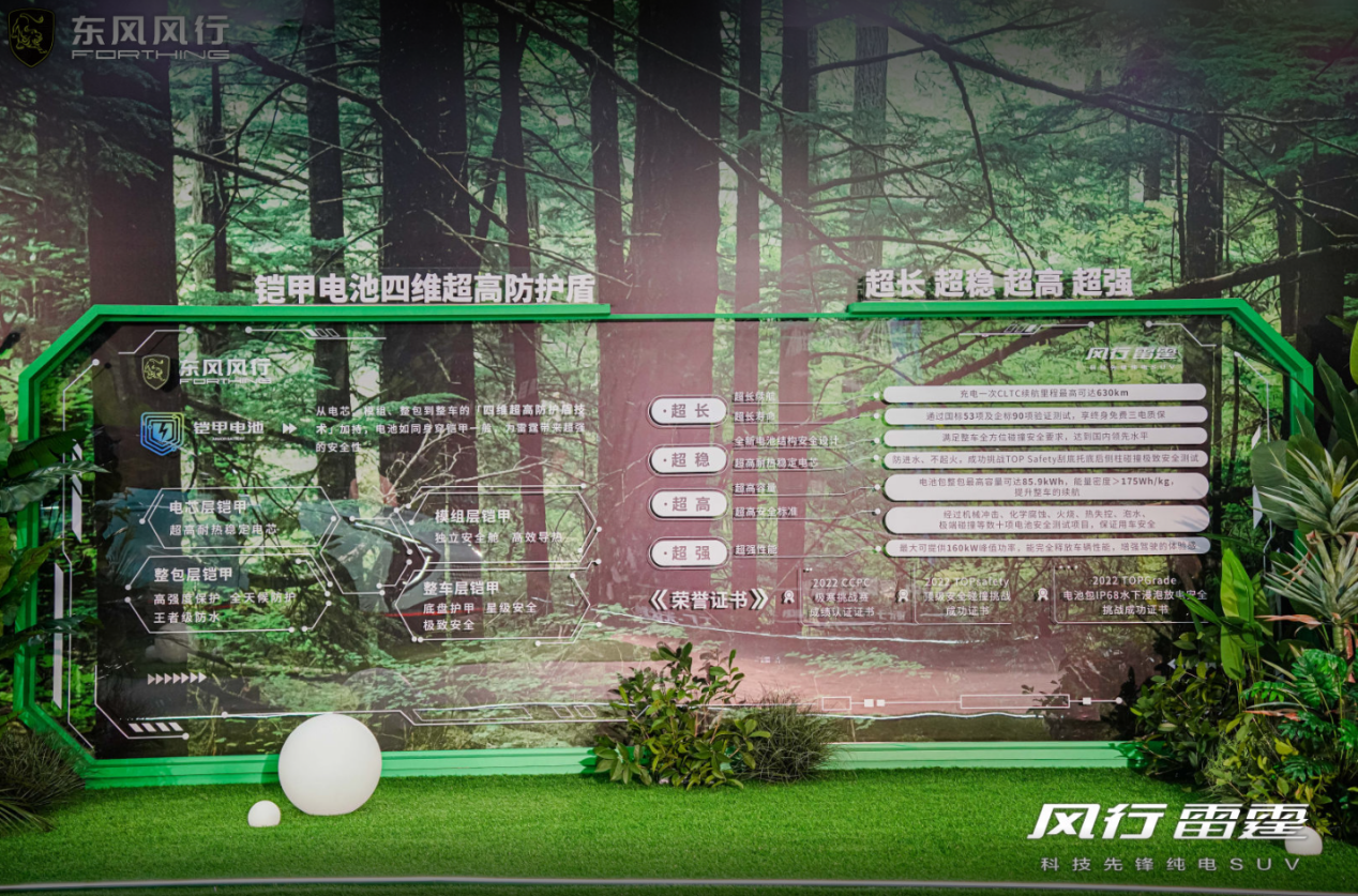 风行雷霆在现场展示了“铠甲电池”,供大家一睹雷霆出色安全性背后的黑科技。铠甲电池通过高效液冷集成系统和BMS5.0安全监控平台的强大安全监测系统,加上电芯间布置的绝缘隔热气凝胶和整车IP68级防水密封措施,全面守护电池安全。