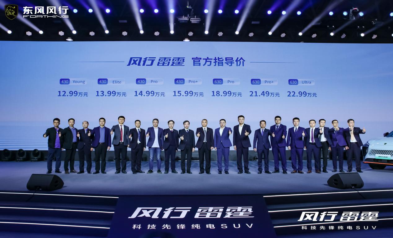 以“13万纯电SUV普及者”之名,风行雷霆本次上市共推出7款车型,指导价格区间覆盖12.99-22.99万元。同时,东风风行还为首批客户提供多项独享服务政策,以“三年用车,费用我出”为主题,让“普及”更贴心,更到位。