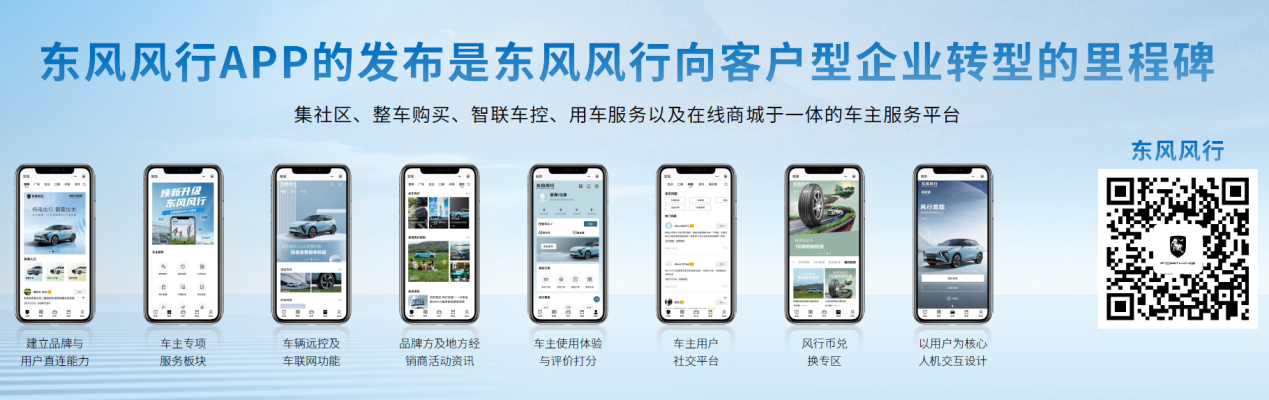 随着风行雷霆的上市,东风风行车主APP也正式发布。东风风行App 是集社区、整车购买、智联车控、用车服务以及在线商城于一体的车主服务平台。