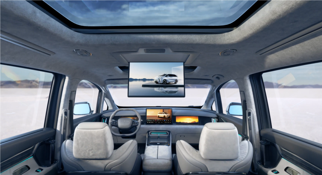 针对工作场景,合创V09还提供了比埃尔法更强的2k+超高分辨率17.3英寸二排吸顶大屏,内置腾讯会议,配备5G网络和二排独立麦克风,满足随时随地电话会议的需求。