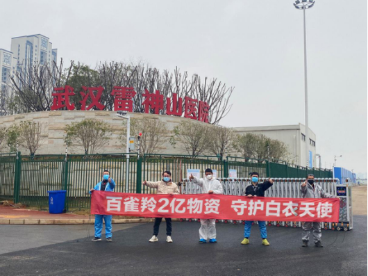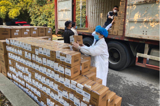 (2月21日,百雀羚第三批捐赠物资送达武汉雷神山医院)