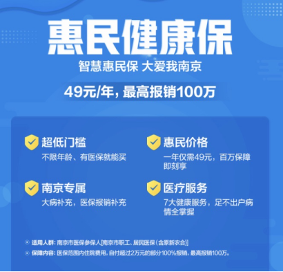 随着医保的普及,现在看病比以前轻松多了。但是一旦患上重大疾病需要住院,除了医保报销外,个人还需要支付一大笔高额费用,承受不起怎么办?近日,苏宁金融上线惠民健康保,只要你是南京市医保参保人员,不限年龄,8月1日前购买,1年医疗险仅需49元,最高享100万保额,“升级医保”更放心。