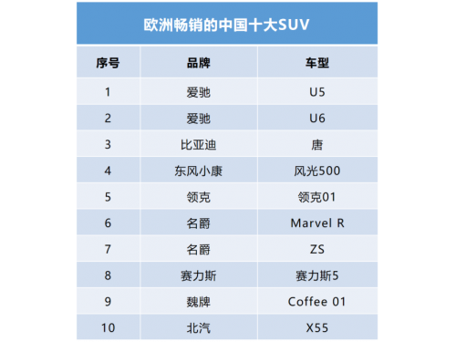 外媒评欧洲销售的中国最佳十大SUV,爱驰U5