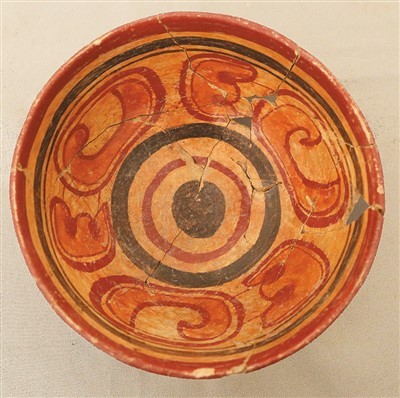 科潘遗址出土的彩陶碗 中洪联合考古队成员李默然(中)和遗址工作人员交流。本文配图均