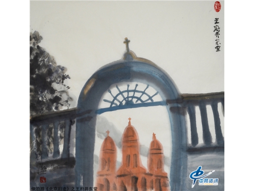 仲泊游水墨寻影《北京旧迹》之王府井东堂【经东网】仲泊游创作水墨寻影《北京旧迹》百辑组画,描绘了晚清民初北京古都的景观,人物及历史文化缩影。古代都城建造了许多帝王宫殿、城楼、园林、庙坛、府