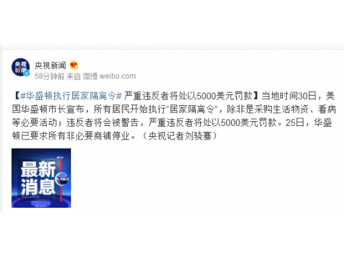 当地时间30日,美国华盛顿市长宣布,所有居民开始执行居家隔离令,除非是采购生活物资