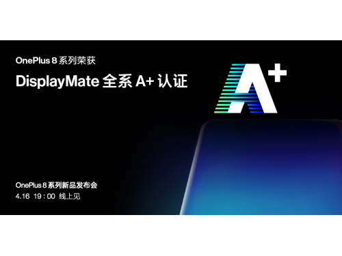 4月2日晚,一加手机宣布新品一加8 系列获得权威屏幕测试机构DisplayMate给出的双A+等级