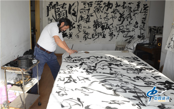 仲泊游在书写《道德经》作品