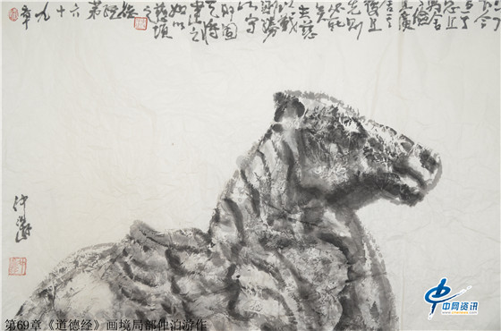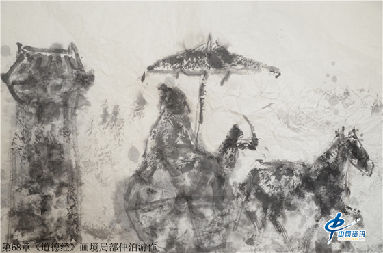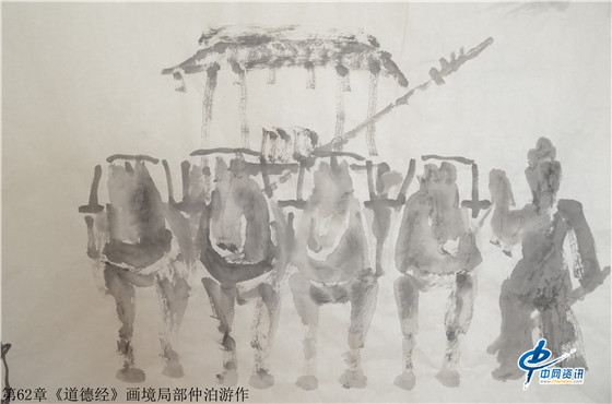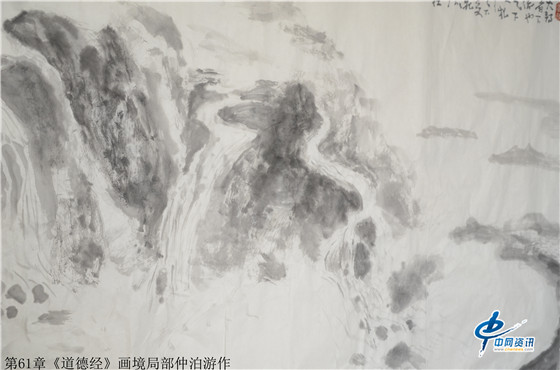 近日记者前往北京二环仲泊游工作室看到了近200米长大型画作八十一幅老子《道德经》画境系列作品。仲泊游自八十年代就研读老子《道德经》并把此书当做从事艺术创作的:“大画论”座右铭,经过数年探寻、多年构思,终于把《道德经》以画作形式呈现出来,画幅宏大,水墨淋漓,宇宙山水,神秘之境;体现了远古的哲人对天地宏宇的探寻之境。阐述了画家对经典的解读,以及用画笔诠释了老子的经典意境。