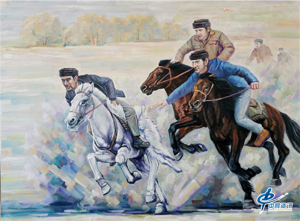 乌鲁木齐市文化馆书记、副馆长、著名油画家李强油画作品《刁羊》