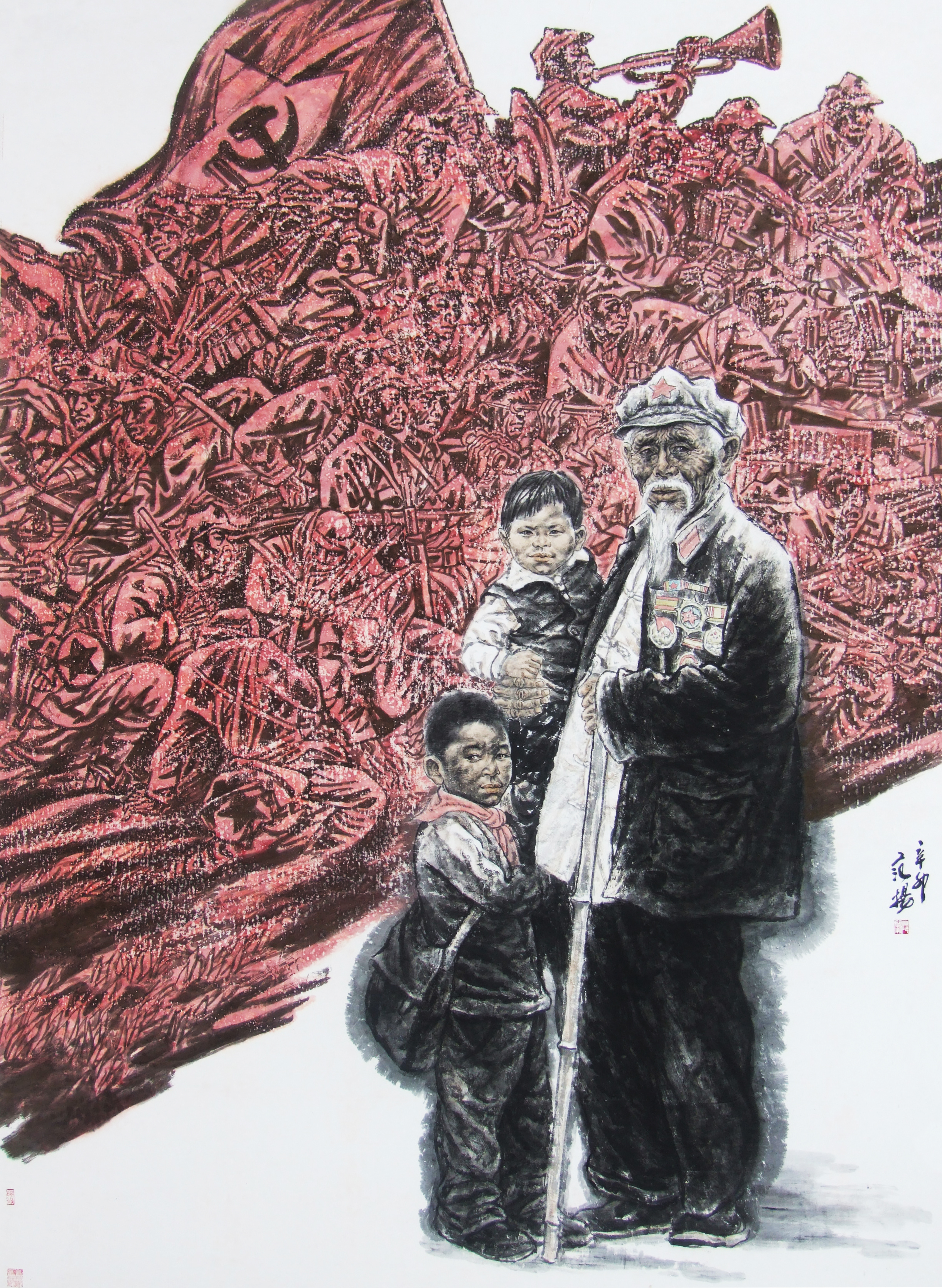 名称:《听爷爷讲过去的故事》 尺寸:240×200cm 创作年代:2011年