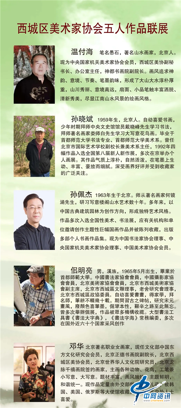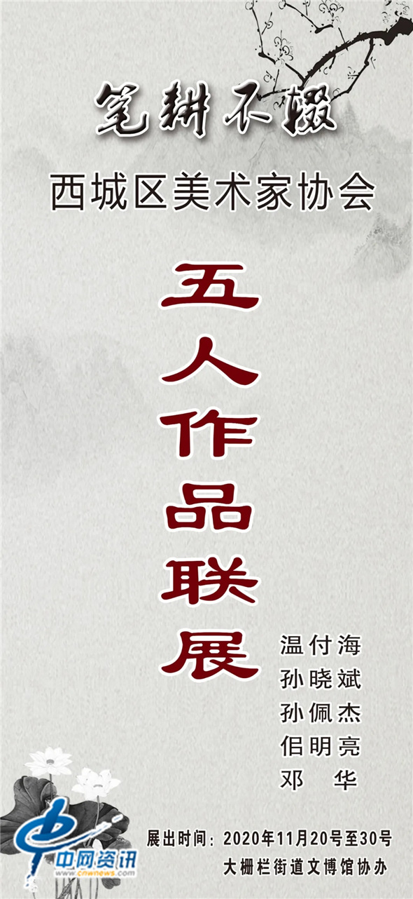 【经东网书画】为了展示西城区美术工作者的创作风貌,带动街道社区书画事业的发展。由西城区文联主办、西城区美术家协会承办、首铭服务中心协办的“笔耕不辍 祝福祖国—— 西城区美术家协会五人美术作品展”于2020年11月20日上午在大栅栏街道文博馆展出并举行了小型开幕式。