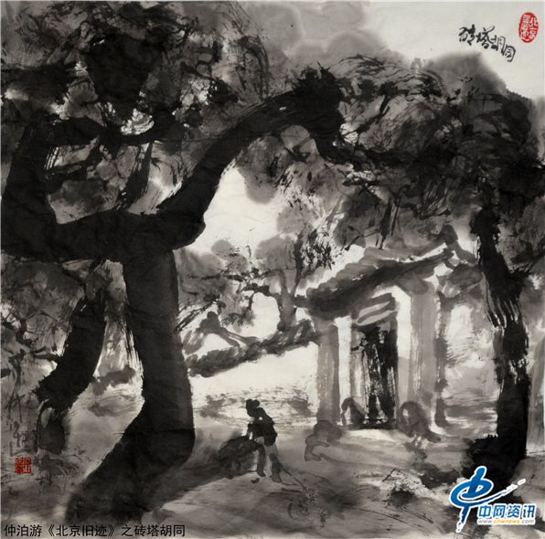 【经东网】仲泊游以水墨语言追忆北京旧迹,北京是一座有故事的都城,历史悠久、文化厚重。画家以点滴往事写意晚清民初的过往人物及老北京风景片段,去唤起人们对北京悠悠岁月的回味。