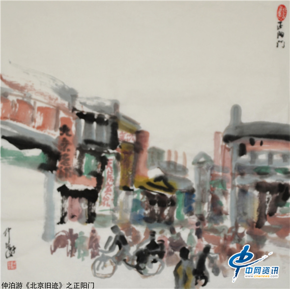 【经东网】仲泊游以水墨语言追忆北京旧迹,北京是一座有故事的都城,历史悠久、文化厚重。画家以点滴往事写意晚清民初的过往人物及老北京风景片段,去唤起人们对北京悠悠岁月的回味。
