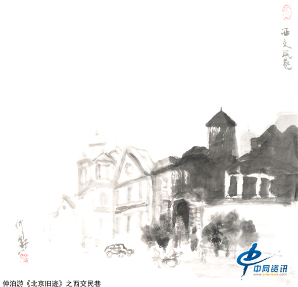 【经东网】仲泊游多年来收集、写生、创作了《北京旧迹》百辑水墨画稿,以此回望北京这座都城悠久历史与人文的记忆。