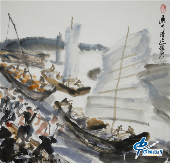 一片繁忙的通州京杭大运河漕运码头
