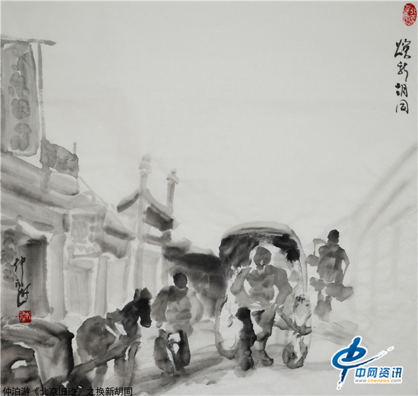 【经东网】仲泊游创作水墨寻影《北京旧迹》百辑组画,描绘了晚清民初北京古都的景观,人物及历史文化缩影。古代都城建造了许多帝王宫殿、城楼、园林、庙坛、府邸、民居、胡同、长城。北京以其独特的地理环境使多民族文化得以交流融合,形成了鲜明的京城印迹。