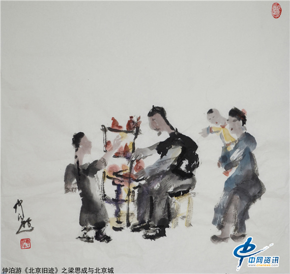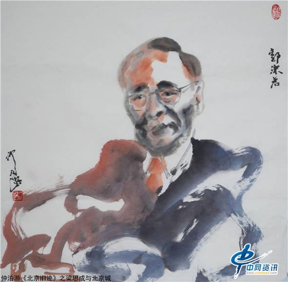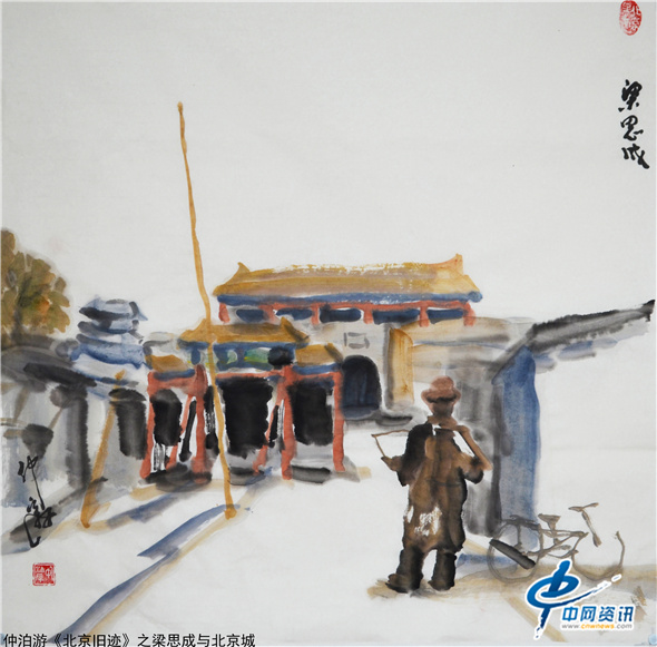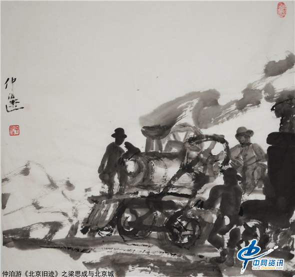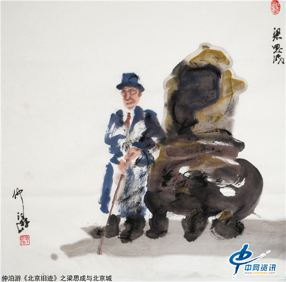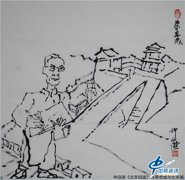 仲泊游《北京旧迹》系列水墨作品共计113集,每集描绘一处北京的历史文化景观,全作约一千多幅作品。画家以自己对古都北京的认识及文化的理解,运用中国传统的水墨语言为大家展现了老北京的角角落落,笔墨简洁凝练,画面生动活泼。本篇是水墨寻影《北京旧迹》百辑的收官之篇,画家在最后也不忘记给一个重要人物梁思成留下几笔。