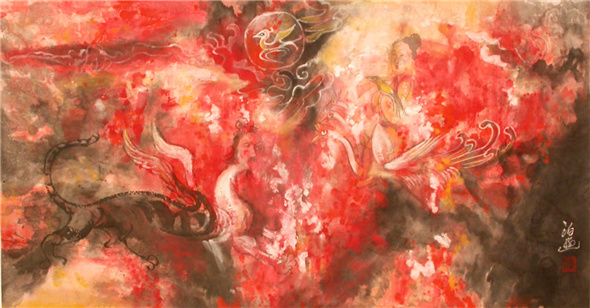 2017年12月发表仲泊游重彩巨作《山海经》系列作品震撼亮相