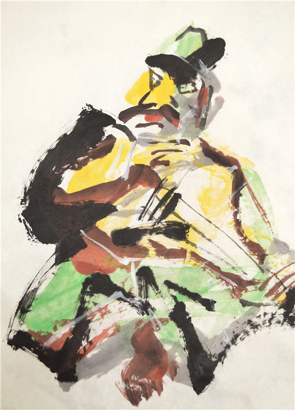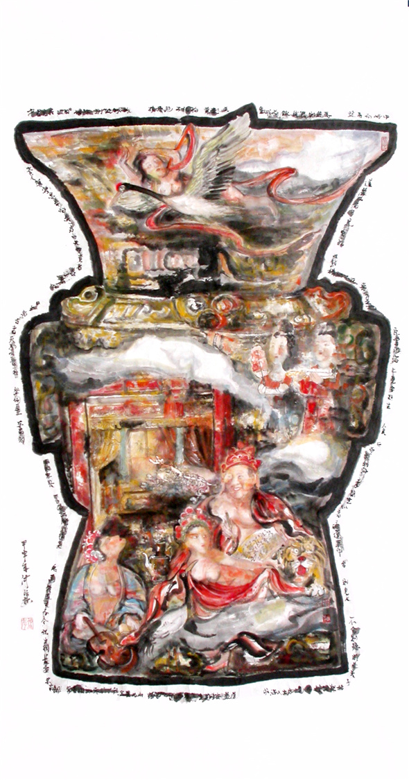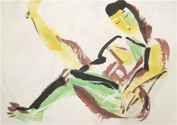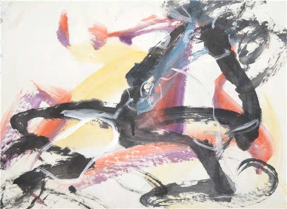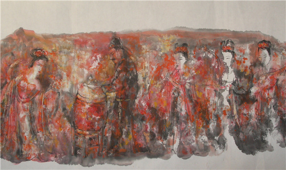 刘晓纯说:"你的画中多点醉意更无拘无束,要强调你绘画中的书写性。接通古代壁画色彩与现代水墨构成关系"。
