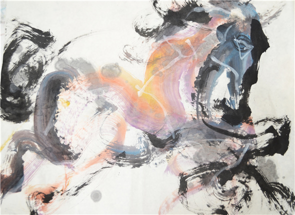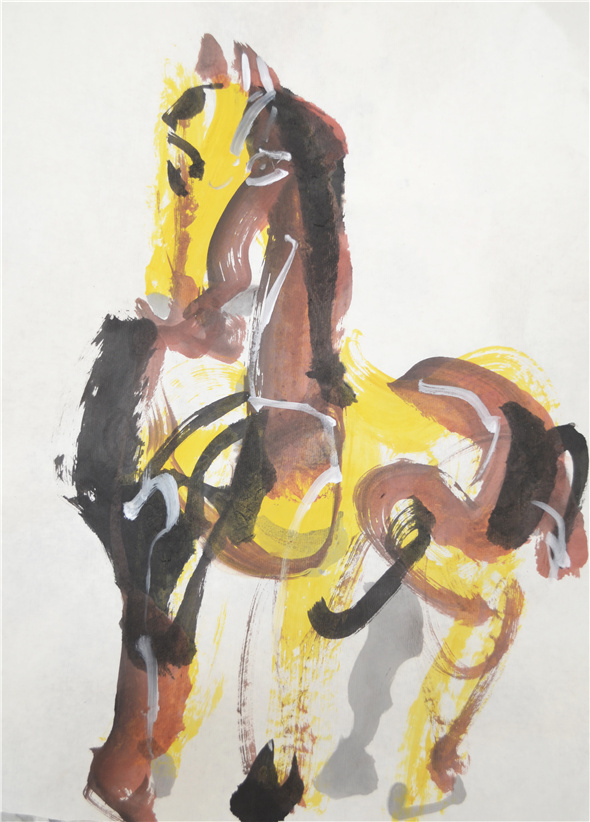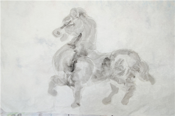 李世南说:“你画的马就是你的风格,再强调一下速度的挥写。不要太像,半抽象点更好”。