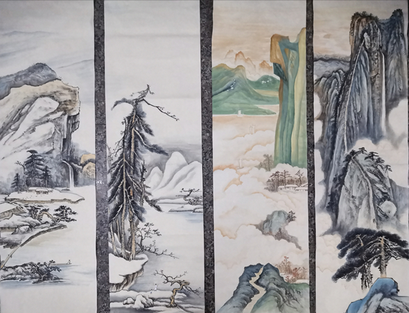 吾友画作近习明清诸家,上索宋元,觅汉唐正脉,得山水清晖,更涉大千先生重彩,而名嗓西北。其文心水墨意味更不在话下。