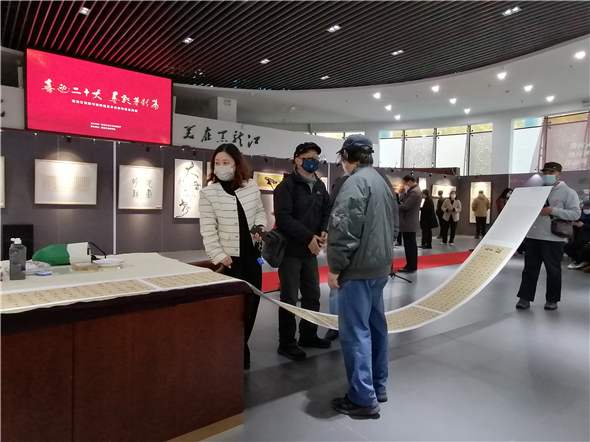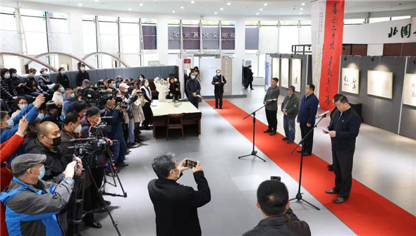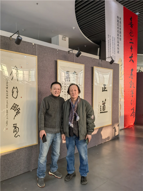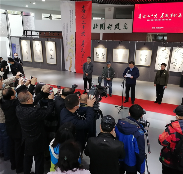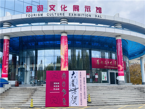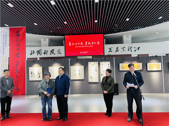 【经东网书画讯】黑龙江省文旅厅与省图书馆主办的《喜迎二十大 墨彩箸新篇》系列名家艺术邀请展首场展十月十七日下午在省图书馆旅游文化展示馆开幕。黑龙江省委宣传部副部长文旅厅厅长陈哲致词并为大梁颁发省图书馆收藏证书。