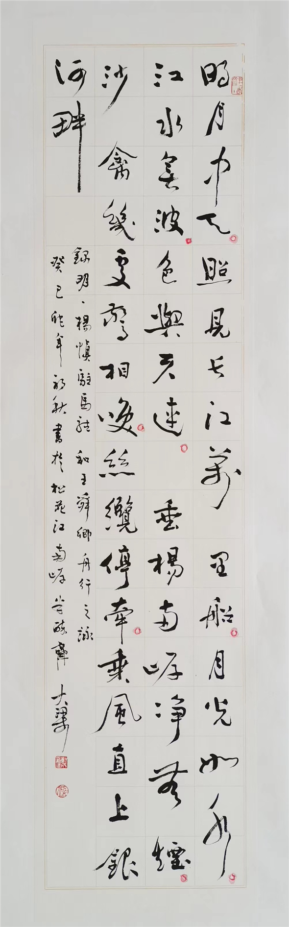 欣赏展出的大梁书法作品,能感知他国学修养之积淀深厚,作品内容多为自己的诗文,即使内容取之古诗文,他也多有自己的见解题于序跋。他力行中国文人的诗书画印于一体。