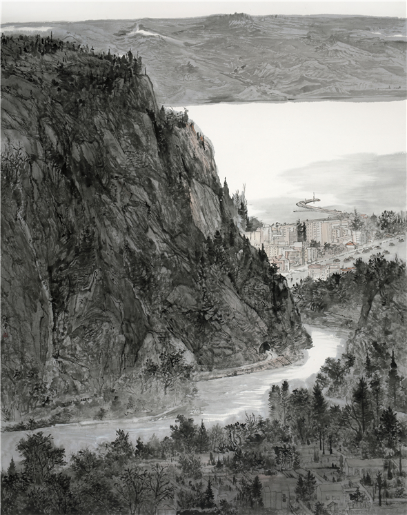 中国画山水是源远流长的传统文化,经过几千年的发展与充实,凝聚了一些新的思想与内容,在孟德平笔下笔墨交融下的山水意象和符号空间,以书入画,自然山水的层峦叠嶂,形神兼备与气韵生动,可以自由地活泼地展现出其本能的艺术价值。
