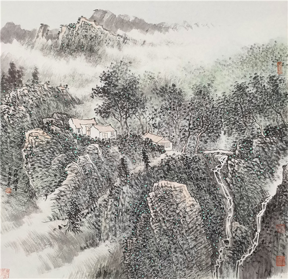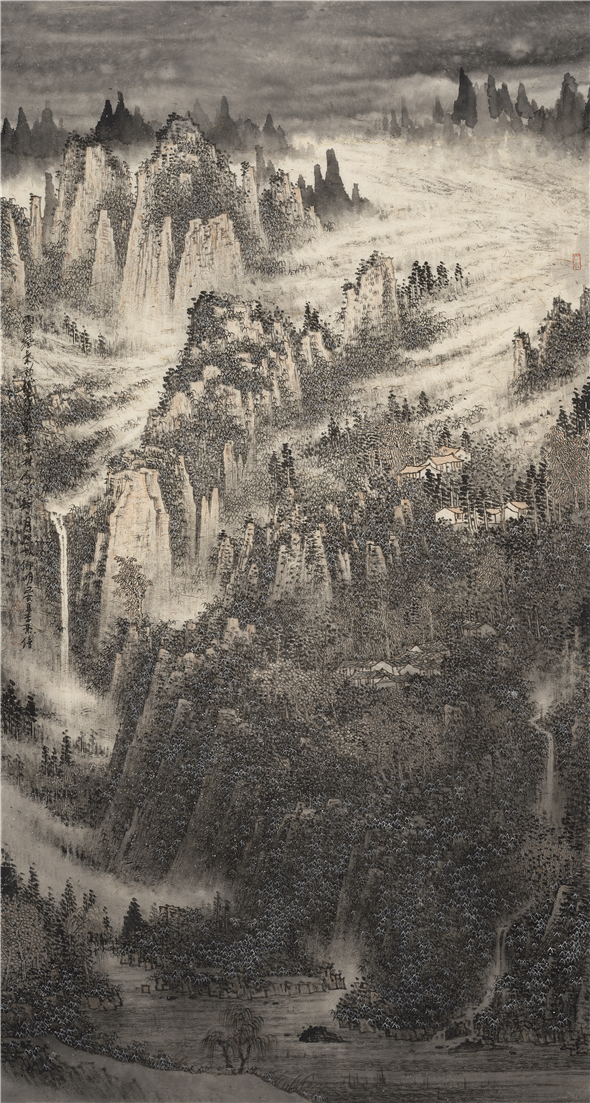 【经东网书画】天地之神妙,造化之壮观,历来被山水画家以浓墨重彩描绘。作为秉承传统的当代画家李景对古代山水画论、画史进行了比较深入系统的学习与研究。他的作品远师董源、巨然、王蒙等先贤诸家,近崇黄宾虹、黄秋园、李可染等近现代大师。我与李景相识已近三十年,多年来,他潜心水墨,酌古斟今取得了一定的成就。特别是近些年多次赴太行山、陇西、桂林、湘西等地写生,积累了大量的写生资料。用心揣摩、认真创作。精心提炼自然元素与传统技法的精髓融合贯通,逐渐形成了其个人的艺术特征。