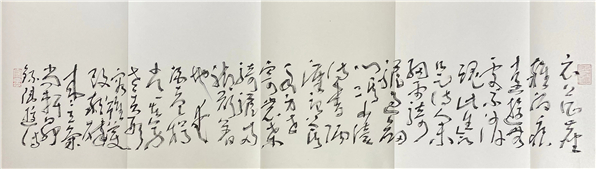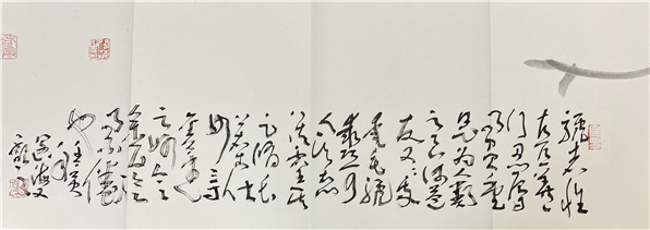 书法本来就是王阔海先生的日课,从真、行、草、隶、篆,甲骨,直到章草和今草,业已形成自己的书写风格。而诗词歌赋同样是王阔海先生孜孜以求的传统文人画要素,几十年来自作格律诗三百余首。一当数者相互融合,一种崭新的水墨样式与境界跃然纸上,这便是被国家专利局批注的“新汉画”。