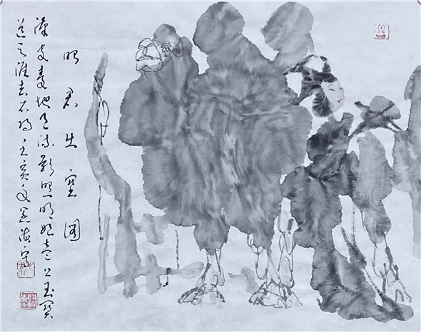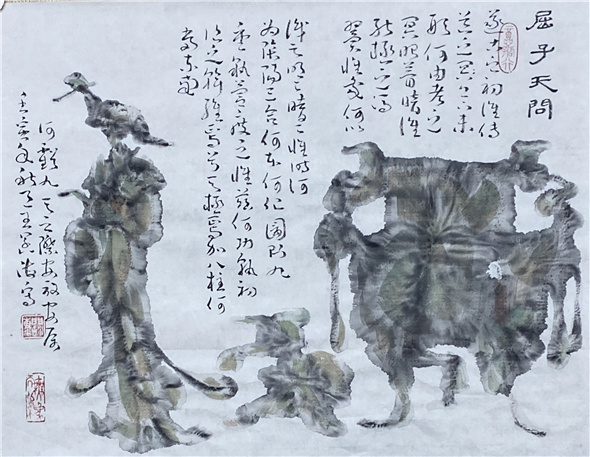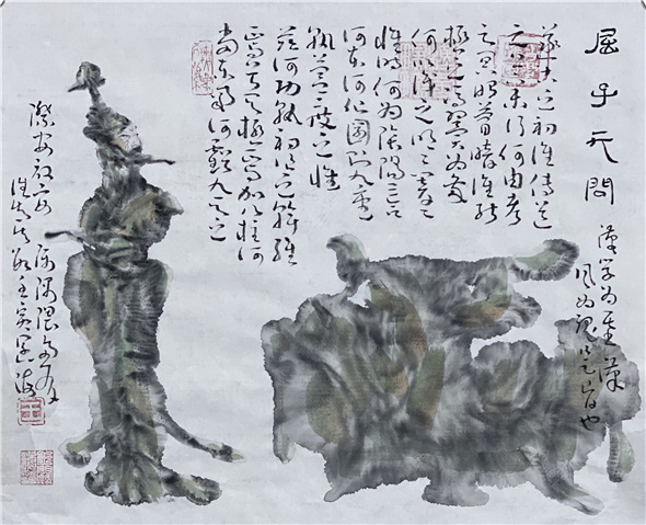 掌握了汉画石像的水墨表现之后,王阔海先生再一次回归经典,回到中国画的写意文人画传统,进一步深入探索汉画石画法与文人画的结合问题。因为,汉画石像处于中国绘画的初期,尚不是肇于魏晋名于唐代王维而成于宋元、诗书画印四者统一的文人画。